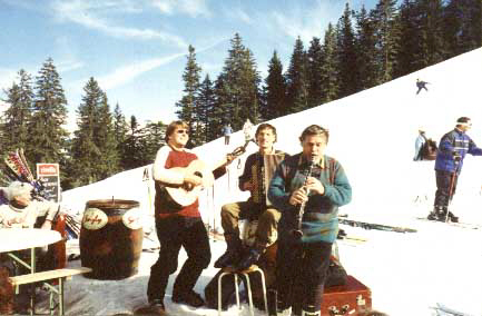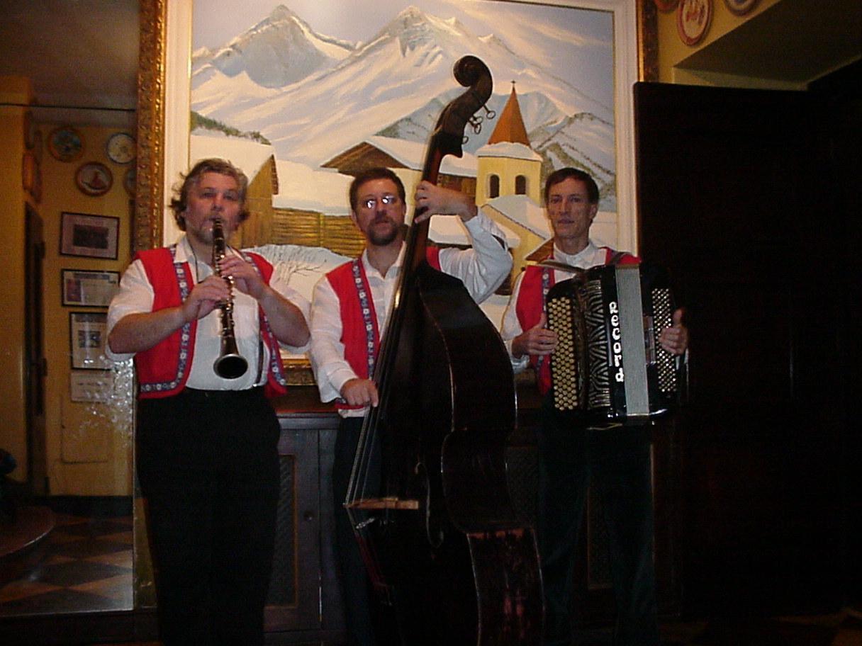 O conjunto de música suíça Schwiizergruess é composto pelos dois imigrantes suíços Gallus Bachmann (clarinete) e Fritz Meier (acordeon) e - quando o espaço permite - do contrabaixista Claudio Matheus. A música alegre, por vezes cantada, é muito solicitada para eventos culturais. Fondue, röschti, queijos e vinhos - tudo fica ainda melhor com a música certa. O vasto repertório suíço é enriquecido com jazz, música internacional ...